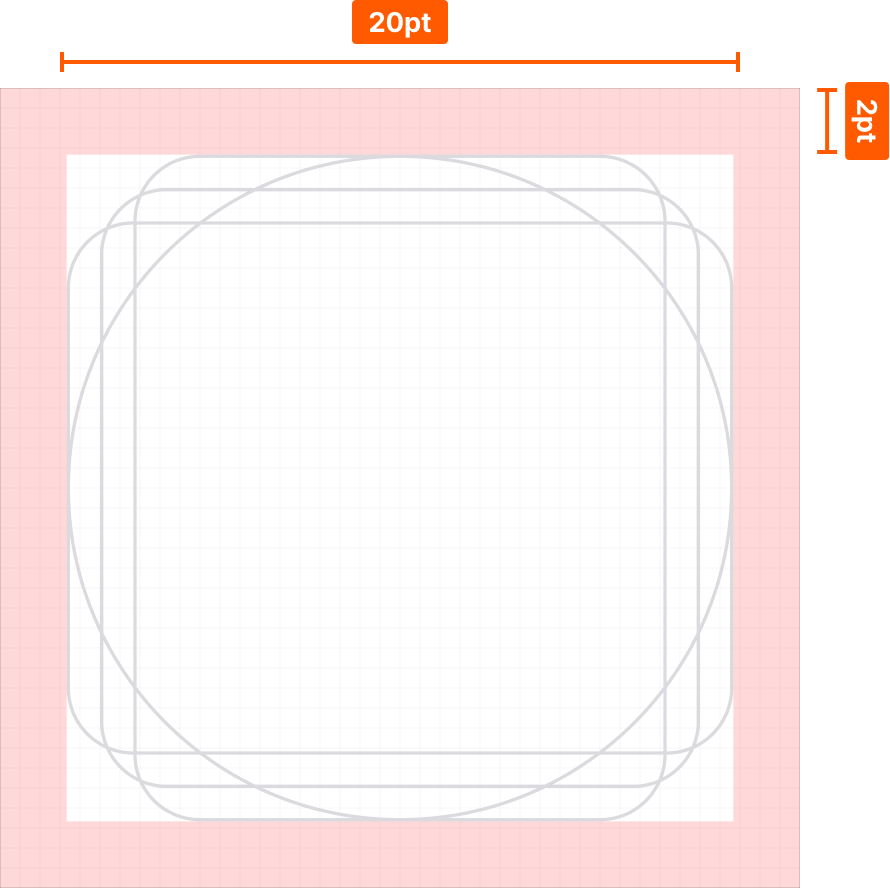 아이콘은 24x24 사이즈를 사용하며, 시각적으로 일관된 비율을 유지할 수 있도록 Keyline Shapes를 참고하여 제작합니다.